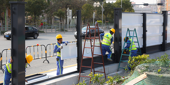 施工圍擋采用優(yōu)質的鋼材和精湛的焊接、噴涂技術,使用不同的圍擋立柱和連接方式,抗風能力強,滿足圍擋的安全性和經濟性。